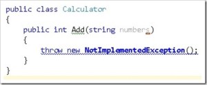 and now we require an add method in the calculator class, creating a stub of this method is enough to make the solution compile.