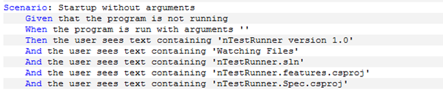 Based on the ruby framework Cucumber, SpecFlow takes a plain text feature document with a simple syntax and creates executable specifications for either the MSTest or the NUnit test runners.